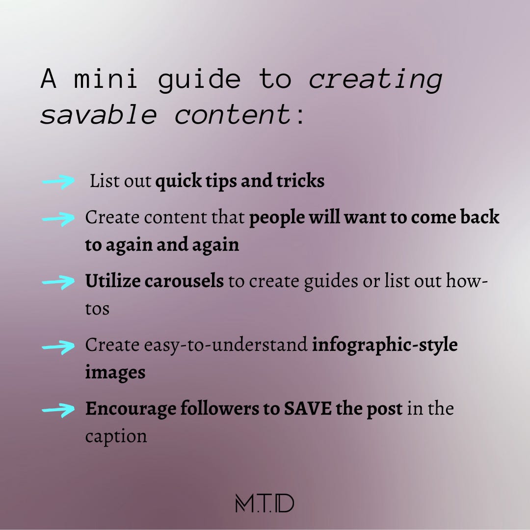 When talking to clients, we often refer to saves as “super likes.” What makes a save more powerful than a ‘like,’ you ask? It signals to the algorithm that the post is so good that they want to come back to view the content again. Once the post is flagged as high quality, the algorithm will push it out to more people, thus increasing your reach and engagement.